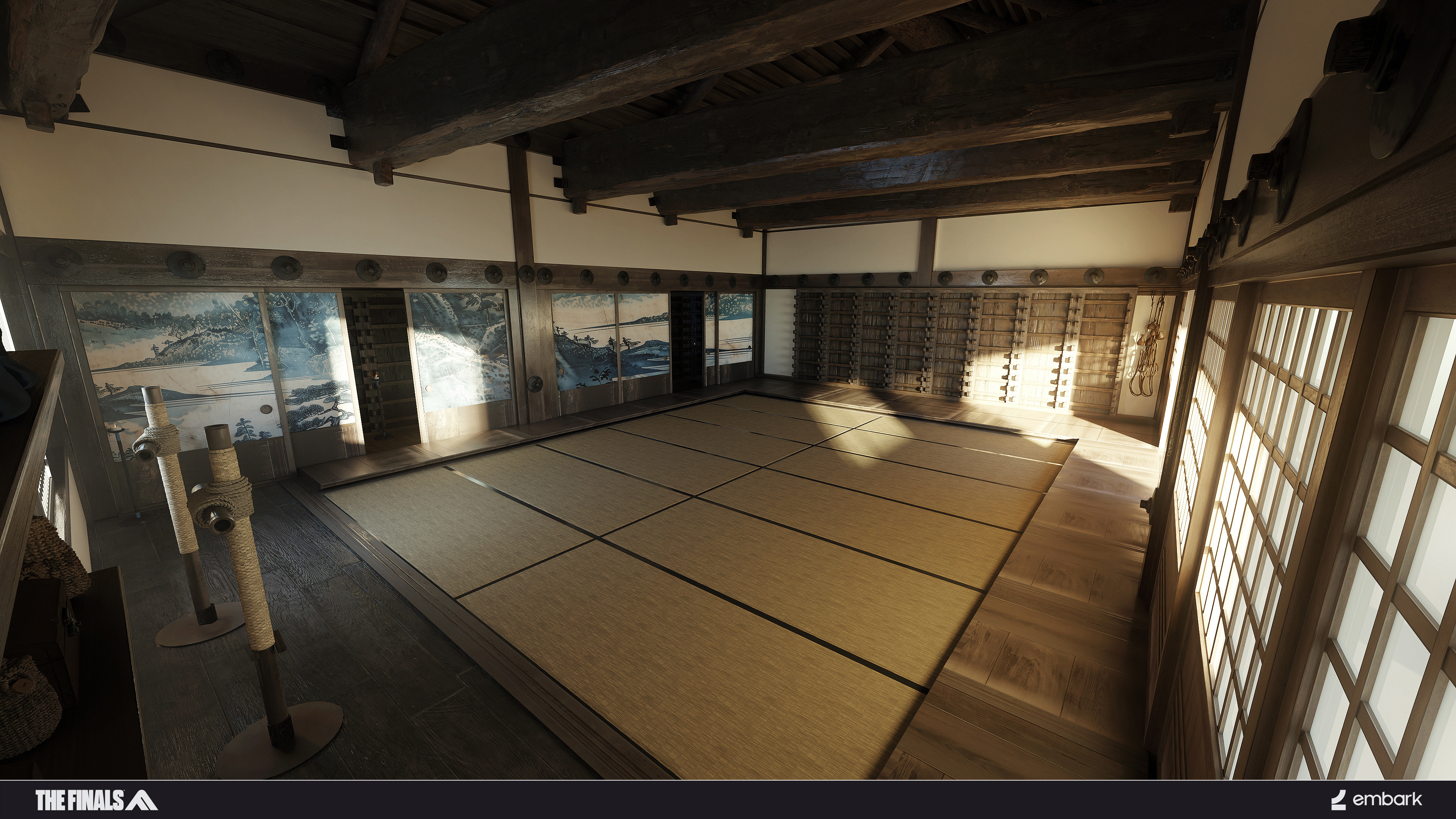 The enviroment art direction for the finals is minimal but bold. The game takes place in digital arenas-based on real world locations, They have been prepared by the showrunners with branding and removal of any lose and/or smaller items.